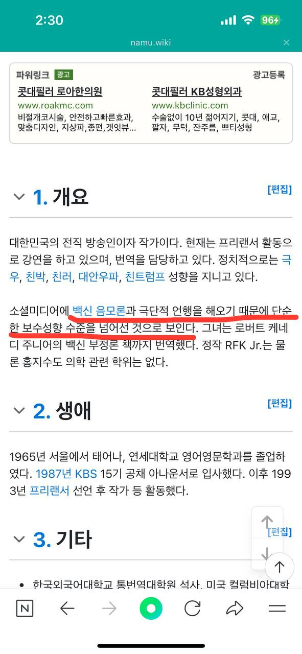 나무위키는 그저 제약사 광고주들에게 코가 꿴 미국 주류 언론이 떠드는 걸 앵무새처럼 그대로 따라서 주절거리는 멍청한 짓을 하고 있다. “음모론”이라는 용어 자체가 미국 중앙정보국(CIA)이 진실을 은폐하기 위해 만든 용어라는 사실을 알고는 있니? 다른 사람의 주장을 논리적으로 반박할 수가 없으니까 그저 인신공격(ad hominem attack)이나 해 대는 처량한 꼬라지 하고는. ㅉㅉㅉ
